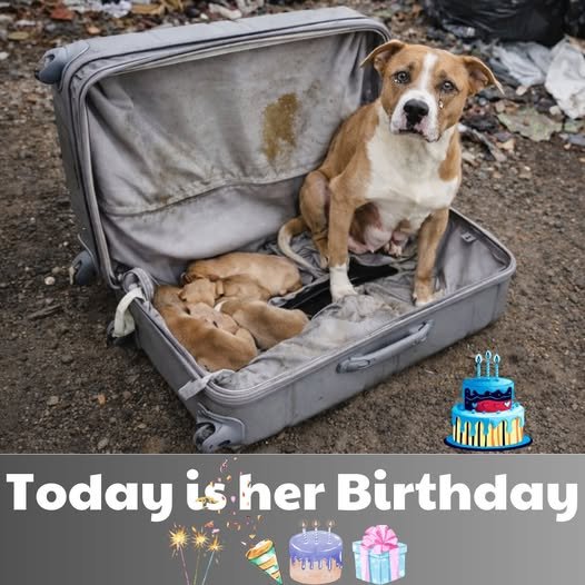 Someone left an old suitcase by the trash. Inside it — a mother dog and 5 newborn puppies whose eyes hadn’t opened yet. She hadn’t eaten in days. She didn’t move an inch from them. Full story 👇 🐾