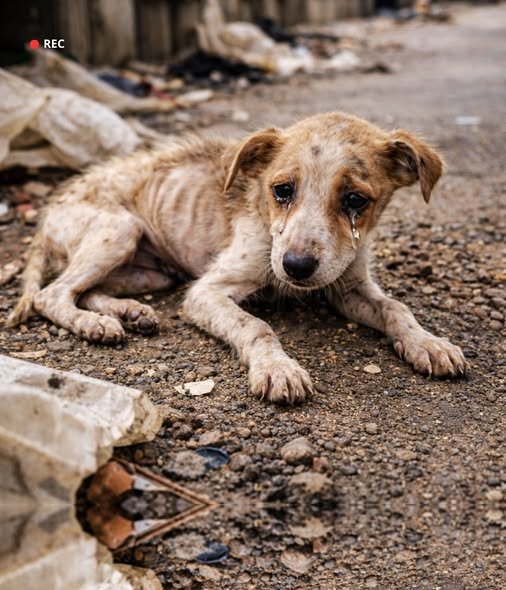 Silas was a brindle-colored mix, or at least he used to be. Now, his fur was thin and patchy, barely covering a skeletal frame where every rib, every vertebra, and every joint stood out like a jagged stone. He looked like he had been carved out of exhaustion. But the most haunting part wasn’t his physical state; it was the thick, milky tears that pooled in his eyes and rolled down his muzzle, leaving wet tracks on the blanket.