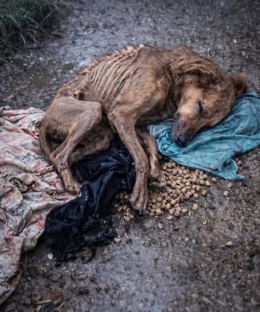 🌧🐾 Under the pouring rain, he protected a pile of soaked kibble…