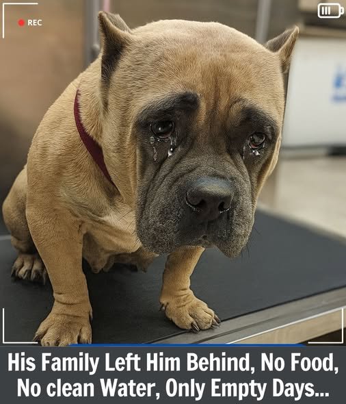 The furniture was gone. The rooms were empty. Dust collected in corners. But in the middle of it all sat a stocky, tan dog with tear-streaked eyes and an empty bowl beside him.