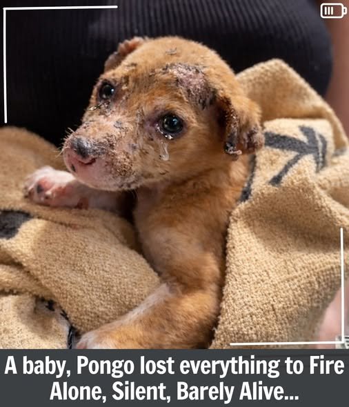 There is a stillness that settles after a fire that nothing else can replicate. It’s not peace—it’s absence. The absence of crackling flames, of screaming sirens, of frantic voices. It’s the sound of everything that once was, reduced to nothing. On a quiet Tuesday morning in a small rural town, that stillness settled over what used to be a home. Firefighters had come and gone, their work done, their trucks vanished over the horizon. The family who lived here had been evacuated, their fate unknown. And in the smoldering wreckage, in a corner where the wall had collapsed into a heap of blackened debris, a tiny creature lay curled. His fur was singed. His body was still. His eyes, barely open, reflected the gray sky above. He was alone. He was barely alive. And his name was Pongo.
