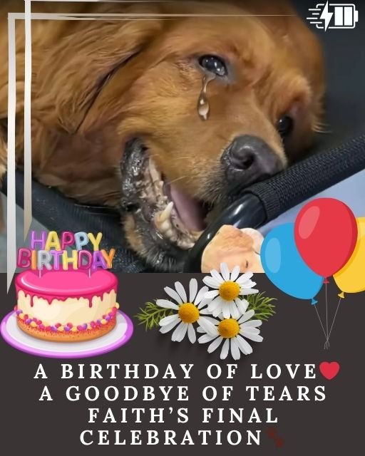 Faith sat in the center of it all, wearing a party hat that kept sliding over her golden ears. Her tail wagged slowly, steadily, as she took in the faces around her. The family who had loved her for twelve years. The friends who had come to say goodbye. The volunteers from the rescue group who had saved her so long ago.