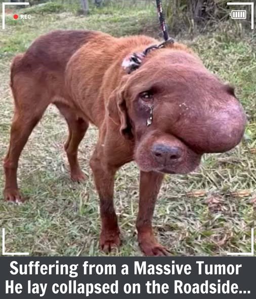 The dog lay collapsed on the rough asphalt, his body limp and unresponsive. As she approached, the full horror of his condition became clear. He was emaciated, his ribs visible beneath a dull, matted coat. But it was the growth on his side—or perhaps his face, depending on the image—that stopped her heart. A massive tumor, angry and swollen, protruded from his body. It looked painful, heavy, and terrifying.