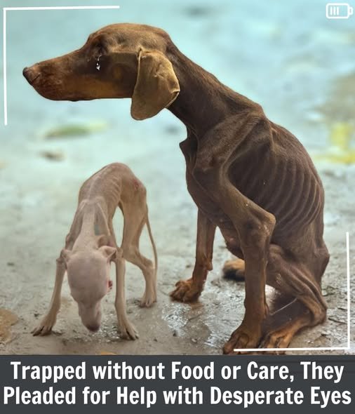 In the corner, huddled together for warmth and comfort, were two dogs. They were little more than skeletons draped in fur. Their ribs were visible; their hips jutted out at sharp, painful angles. The floor was covered in inches of filth. There was no water bowl, no food scraps, just dirt and despair. But it wasn’t their physical state that struck the rescuers first. It was their eyes.